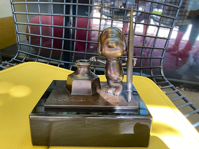 I love having this museum 10 minutes from my home. I think it's just the right size and design for its subject: classy, graceful, not too small or big or grandiose. The staff and volunteers are great. Plus it's set right in the middle of the places Schulz worked and loved, his studio and ice arena (although Schulz helped plan the museum, he died before it was built). You can still feel his spark in the place. I've told this story before: whenever I'm working on a story and get stuck, I go to the ice arena's Warm Puppy Cafe--the same place Schulz ate his daily English muffin--buy a basket of fries and a Coke, and sit in that comics cathedral until I figure it out. Hasn't failed me yet.