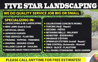 We get a postcard in the mail from an outfit called Five Star Landscaping.