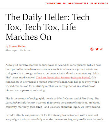 Steven Heller is a highly regarded designer, art direction, journalist, critic, writer and editor who writes the "Daily Heller" blog for Print magazine, and a few days ago he asked me some questions about The Last Mechanical Monster. It's an unusually deep and thoughtful interview; could be the best one I'll do about this book! Many thanks to Mr. Heller and Print.
