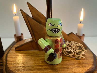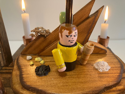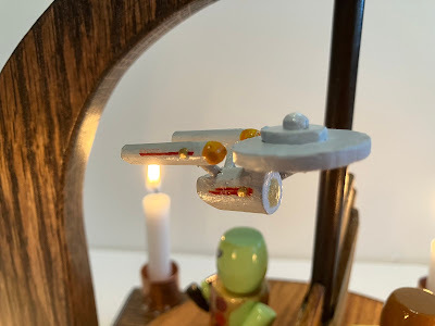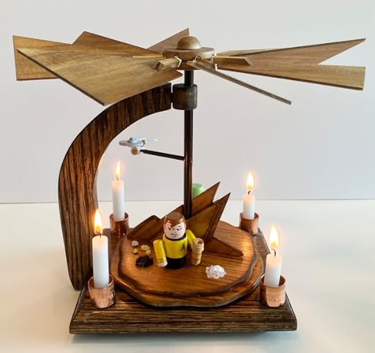 It's my take on a German Weihnachtspyramide, a candle-powered carousel that is a traditional Christmas decoration in both that country and ours. Except instead of the Christ child in a manger or jolly Santa in the sky, I recreated the classic battle between Captain Kirk and the Gorn from the "Star Trek" episode "Arena" (1967).
