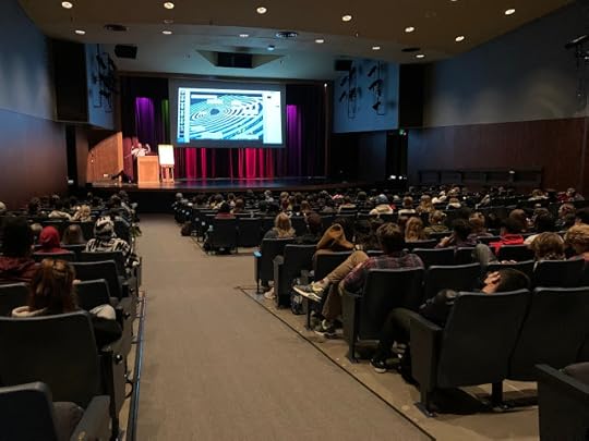 I gave three talks on Friday: a workshop for a library full of middle school students, a lecture for an auditorium full (200-plus) of high school students, and a workshop for a combined art and creative-writing class at the high school. My last three talks happened at the downtown library. I gave two on Saturday: a workshop for the community, attended by about 15 prospective (or at least curious) writers and cartoonists, and a community lecture on graphic medicine suggested by a Friend who'd read Mom's Cancer. On Sunday afternoon, I gave a concluding community lecture in which I made the case for literary graphic novels and tied my fire experience to theirs to talk about readiness and resilience.