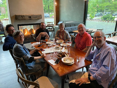 After the last event on Saturday, a small group of us went out to dinner. Clockwise from left: Professor Susan Squier, Dr. Ian Williams, Harvard medical librarian Matthew Noe, professor Shelley Wall, me, and Dr. Michael Green. I include honorifics not to impress but to indicate the breadth of experience and interests people bring to these conferences. It's the best thing about them. Also, most of those people have authored or co-authored books. Photo by Susan's partner Gowen Roper.