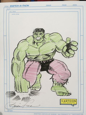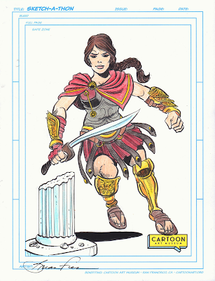 In addition to hosting an in-person Sketch-A-Thon at Comic-Con, the Cartoon Art Museum does a virtual Sketch-A-Thon in which patrons can commission art from artists for $15 and up, depending on complexity, size, etc. So in addition to drawing live last week, I'm back home drawing . . . well, I'm still drawing live, but nobody's hovering over me watching.