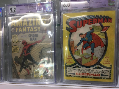 Two of the comics that started it all: the actual first appearance Spider-Man and first issue of Superman, going for "if you have to ask you can't afford it" amounts.
