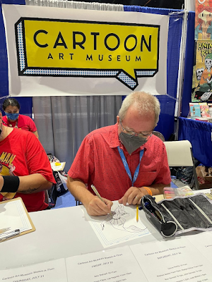 My schedule: Thursday 1-2 p.m. I'll be drawing for Andrew Farago and the Cartoon Art Museum at booth #1634. Cartoonists volunteer to draw whatever patrons want for, I think, a $10 donation. I have packed my brush-pen and sharpened my colored pencils.