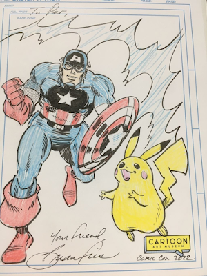 Captain America teams up with Pikachu! Villains have no chance.Next, a story about someone whose name I'll keep to myself. This person came to do a Comic-Con panel after spending a full day and night in a San Diego hospital with IVs, antibiotics, the whole enchilada (not infectious or Covid-related). They showed up having been released from the hospital just a few hours before, did a great job on their panel, and no one would have guessed how weak and awful they felt. Knowing full well that a convention panel is one of life's least pressing obligations and everyone would have forgiven their absence, they still kept their commitment. It was one of the greatest examples of "The show must go on" I've ever seen, and kind of awesome.