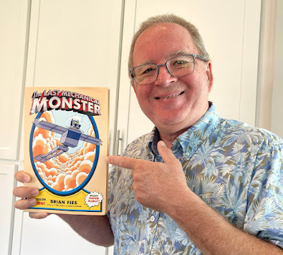 Editor Charles Kochman teases me just before I go to join him at Comic-Con with photos of "The Last Mechanical Monster" in print! Hey, look, it's a real book! The first couple show the case--the hardcover beneath the paper dust jacket--and I especially love those big robot eyes because Karen thought of that. Charlie and I couldn't figure out what to do with the case and Karen said, "How about a big robot eye?" And that's what we did. An angry red eye on one side and a happy green eye on the other. Can't wait to hold it in my hands someday soon.