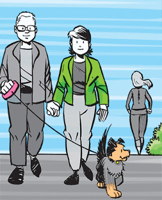 For the past couple of years, over on Facebook, I've written a series of posts titled "A Peek into the Intimate Intellectual Life of a Long-Married Couple." No particular schedule, I post them when they happen, and my rule is that they're "99 percent real life." The conversations between Karen and I actually happened--usually on our morning dog walk--but I might buff 'em up a bit to make 'em sparkle.