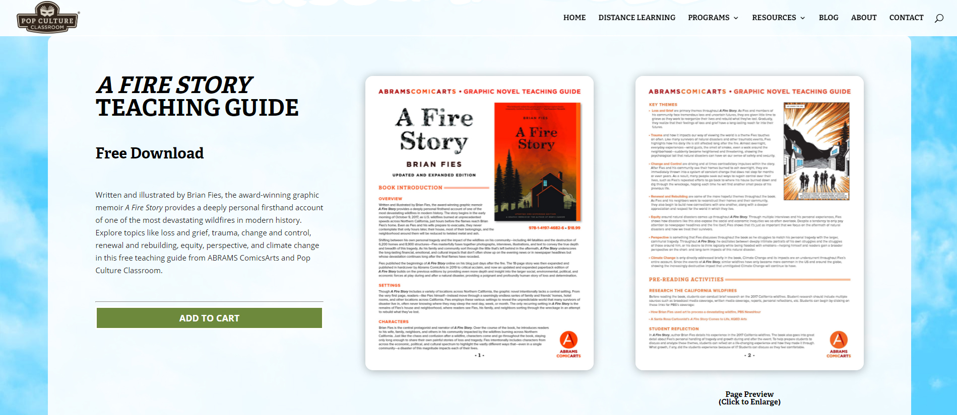 I'm excited and proud to announce that Pop Culture Classroom has created a Teaching Guide for A Fire Story that I think is excellent.