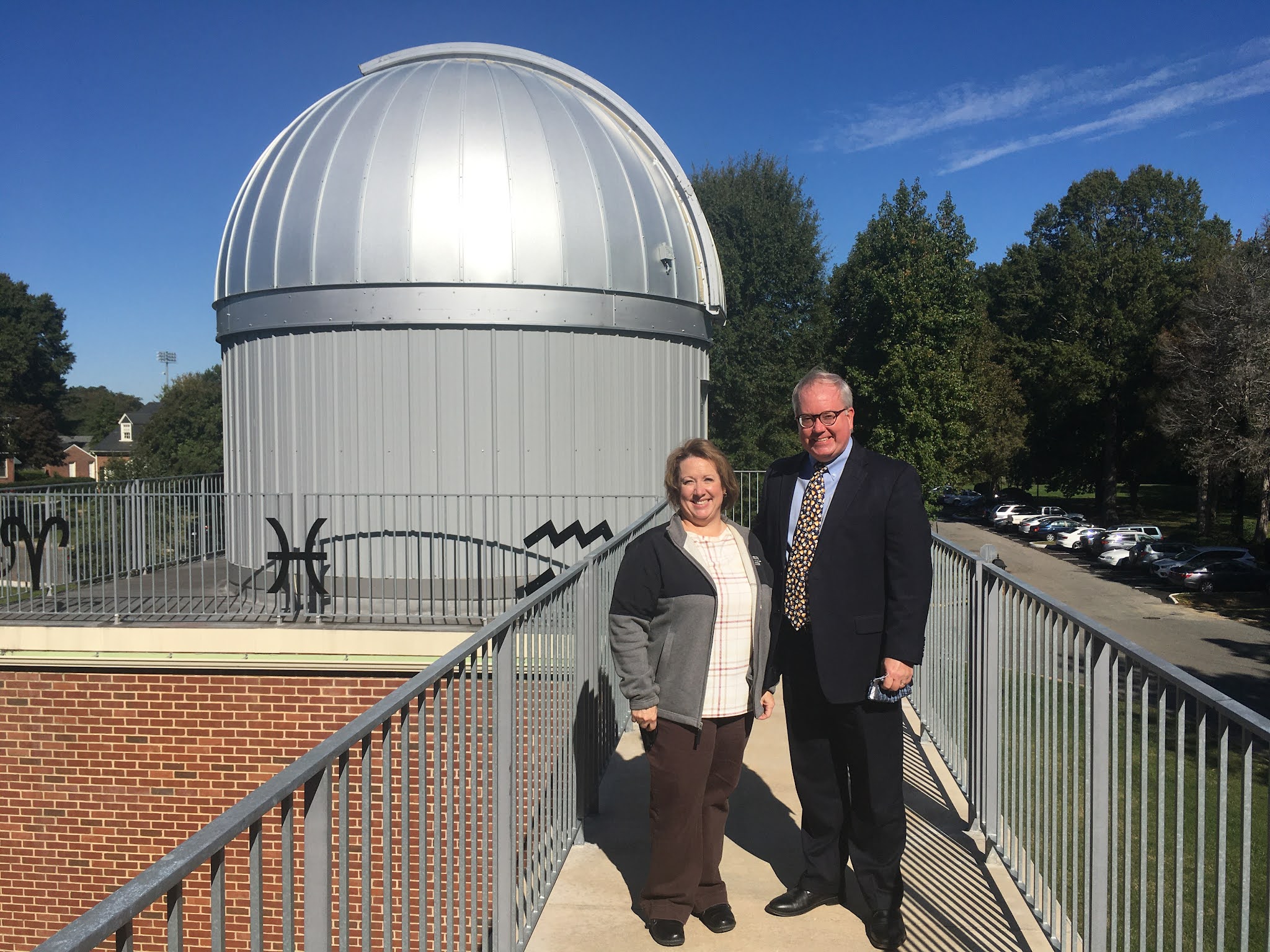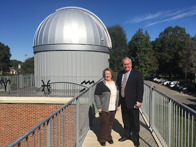 During my morning campus tour with Robert Patterson, who's on the right here, I saw this small campus observatory atop a building that looked so much like the small campus observatory I spent countless nights in at UC Davis that I practically begged for a tour. Robert obliged by rousting Physics Dept. Chair Deonna Woolard (left) from her office, and she was kind enough (and had the keys!) to let me in.