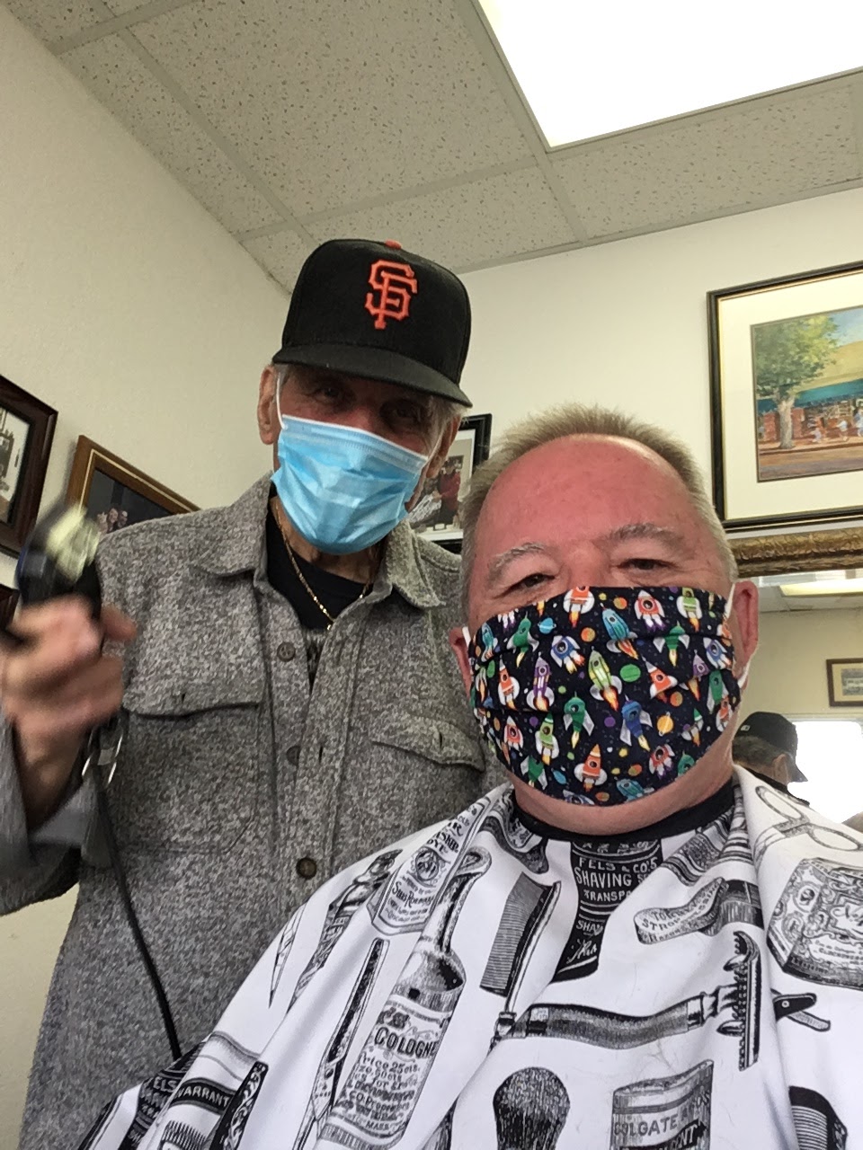 Over the years I heard most of his life story. He left an abusive father and family very young, headed west as soon as he could, and in the 1970s opened a big (16 chair?) barbershop in San Carlos, south of San Francisco, where, to hear him tell it, he became the unofficial team barber for both the S.F. Giants and 49ers when they played at Candlestick Park. As he neared what for most people would be retirement age, he and his wife Mary sold that business and moved to the Wine Country, where he toiled in smaller and slower barber shops until finally winding up working for himself in a hole-in-the-wall he rented in an odd old commercial business park. Mary died about 10 years ago; Guy still marked every anniversary and talked things over with her urn on his mantel at home.