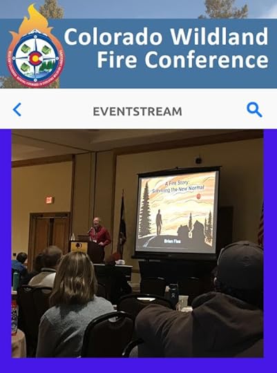 After a warm and moving introduction by conference organizer Schelly Olson, who lost her home in a wildfire, I began by saying: "I am not a wildfire expert. I am a wildfire survivor. Which makes me a KIND of an expert...." Went on to tell my fire story, show the KQED video, do some readings from the book, and distill some lessons learned from our fire that they might use in their own communities. If wildfire has hit anyplace harder than California the past few years, it's Colorado, and they appreciated a perspective they don't often hear.