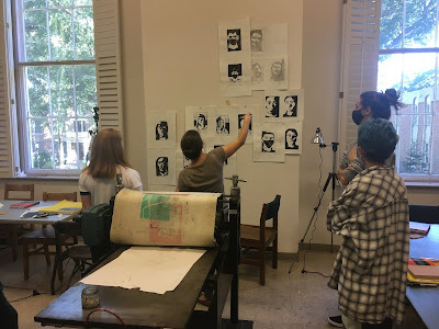 My third class was Printmaking, also with Prof. Peyton. Just four students, but very sharp and engaged. I said repeatedly, and wasn't joking, that I'd LOVE to take this class. Printmaking is something I'm very interested in and hope to pursue. They're doing it now. I went to a big school, the University of California at Davis. I don't know what enrollment was when I went there, but now it's about 30,000 undergrads and probably wasn't much different then. That environment worked for me, I thrived and loved it. But spending a day at Randolph-Macon made me nostalgic for a different education I could have had. I think a student there is very lucky.