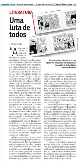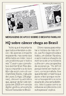 I just replied to an extremely long and detailed e-mail interview for Folha de São Paulo, which I'm told is one of the leading newspapers in Brazil, about the forthcoming Portuguese edition of Mom's Cancer.