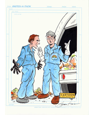 As I mentioned last week, I signed up to do art commissions to support the Cartoon Art Museum in San Francisco while Comic-Con International was raging in San Diego. In exchange for a donation, people could ask the artist of their choice to draw pretty much whatever they wanted. I've done it before, always enjoyed the variety and challenge, and this year was no different!