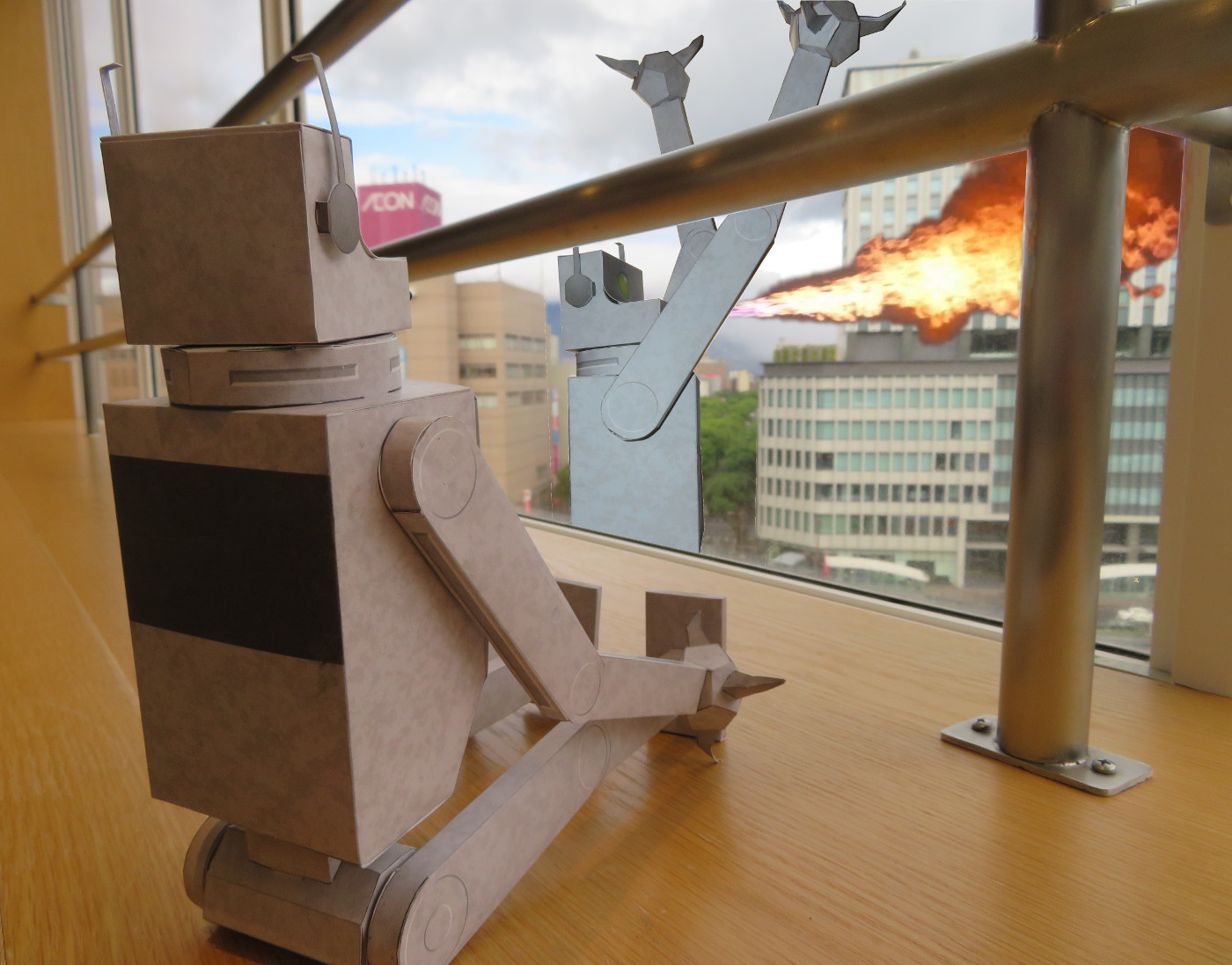 Curtis titled it "Dreaming Mechanical Monster dreams in the land of Godzilla."If you'd like to build your own giant robot (warning: giant robot not actual size), you can download the plans here. All it takes is seven sheets of cardstock, scissors and glue, and infinite patience.