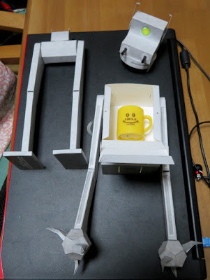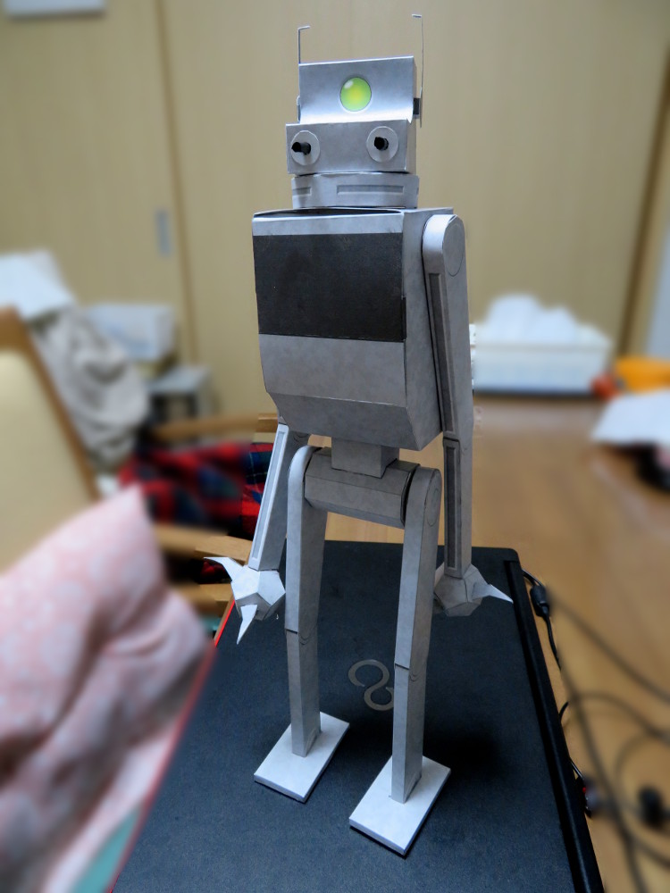 As I did when an earlier version of "Last Mechanical Monster" concluded on my own website, at the end of the GoComics run I offered loyal readers a chance to download a papercraft version of my giant robot protagonist. Loyal reader Curtis Hoffman did, and gave me permission to share photos of his result.