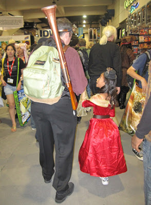 My daughters and I agreed we didn't see as many people in elaborate costumes as in past years. There are still a lot of them, but as a proportion of total attendance their numbers seemed low to us. Robin and Laura theorized that tighter ticket policies are discouraging cosplayers who in years past might have been able to hang out in front of the Convention Center or in the Lobby. Now you need a badge to even get on the same block. Could be. In any event, here's to the creative dreamers who add a little color and whimsy to life.