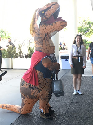 Early Thursday morning Starbucks line, I was welcomed to Comic-Con by a Dinothor. Or perhaps a Tyrannothorus Rex. I didn't ask.