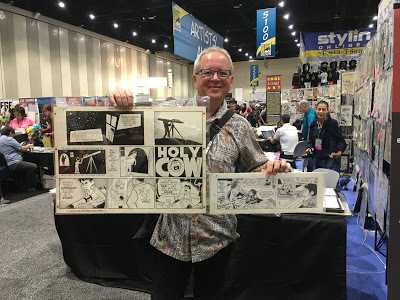 I lost a lot of original cartoon art when my house burned down. Comic-Con helped me replace some of it. On the left is a Sunday page of the comic strip "Gordo" by one of my all-time favorite cartoonists, Gus Arriola. And it's astronomy-themed! On the right is a daily "Dondi" by Irwin Hasen, a short, profane, Golden Age cartoonist I was proud to meet a few times before he died. When I bought my first "Dondi" directly from him, I flipped through the short stack in his portfolio before making my selection. Irwin's eyes glinted as he scowled up at me. "You've got a good eye, you son of a bitch," he said. "You picked the best one." It was one of the greatest compliments I've ever received. This page wasn't the same, but it was another good one.