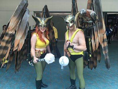 Wonderful Hawkwoman and Hawkman costumes, but I hope they never tried to go through the Exhibition Hall.