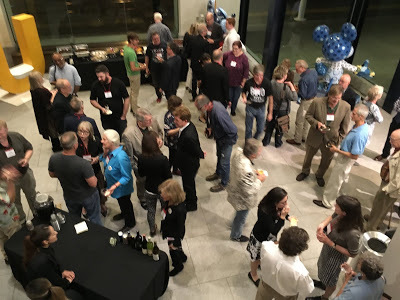 A blurry pic overlooking the opening reception at the California Museum, a few blocks from the capitol. You know it's the California Museum because it has Mickey Mouse statues. There are probably four or five Pulitzer Prize winners in this shot.