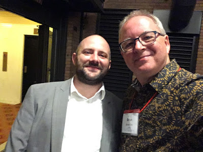 With Matt Bors, creator of The Nib. The Nib is, I think, a big deal, as an outlet and business model for cartooning in the 21st Century. Matt was there with his wife and toddler daughter, who melted my heart when she lurched up behind me and clutched the back of my knee for balance, just the way my own little blonde babies did so many years...sniff...sorry, I got something in my eye..... Anyway, Matt's cool, too.I had good conversations (but no photographic proof) with Pulitzer Prize winner Ann Telnaes, Pulitzer Prize Winner Jack Ohman, Pulitzer Prize Winner Mark Fiore, and even some people without Pulitzer Prizes.