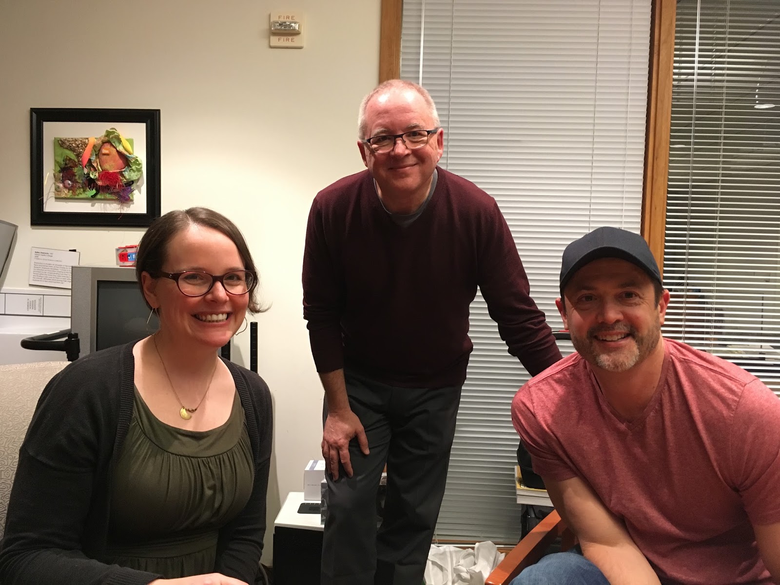 Lex, Jeff and Paige talking in the museum's little auditorium.