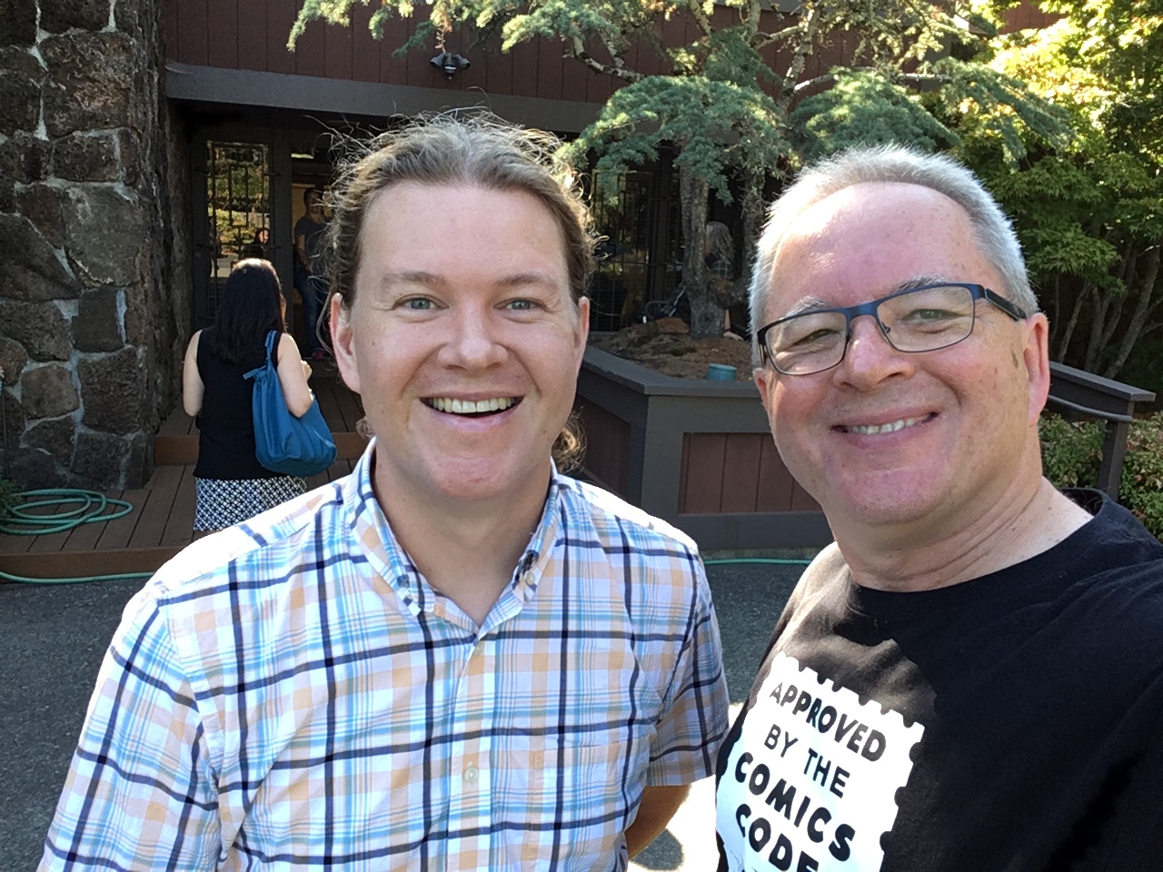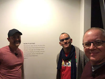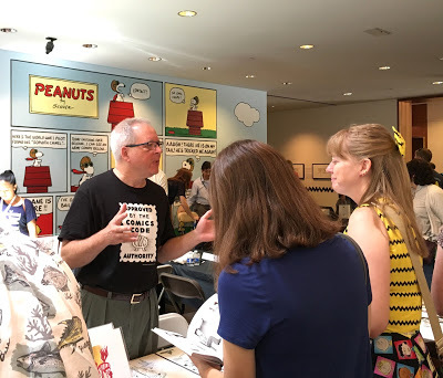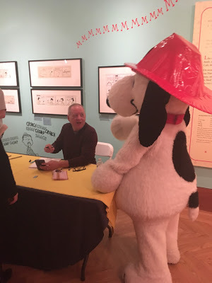 It took a lot of guts to ask Jeff Smith to pose for a selfie. He had many people vying for his attention, but we managed to talk about our mutual artistic hero, cartoonist Walt Kelly, and what it's like to scrap a project and start over from scratch after you've already completed 100 pages of it, which we've both done.In the corner of the studio where Mr. Schulz used to work, his widow Jeannie set up his drawing table and chair from home (the furniture originally in the studio is now exhibited in the museum). All studio tours for cartoonists end in this corner. Timidly, in hushed tones, they ask if they can sit in the chair. Yes they can. I've visited the studio a few times, and a couple of years ago even posted some pictures of me sitting in the chair, but I hope I never get so cool that I don't feel a little jolt of electricity when I get to do it again.