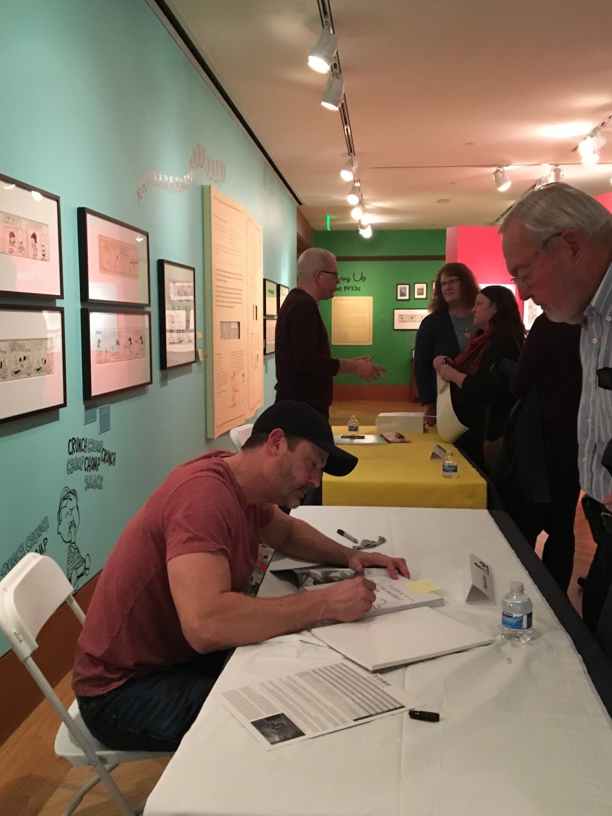 The celebration began with a talk by Jarrett Krosoczka, creator of the bestselling Jedi Academy and Lunch Lady series. Honestly, I missed that part because I was setting up for immediately after, when folks got to meet more than a dozen cartoonists, including me, in the museum's Great Hall. A lot of these photos were shot by my daughters Laura and Robin, who are much better tablers and salespeople than I am.