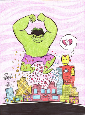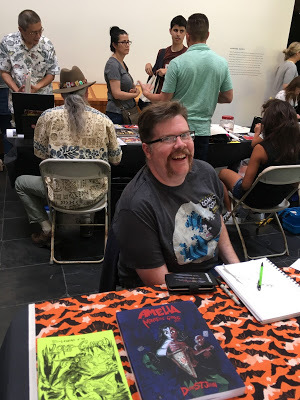 I added this charming drawing by Tom Beland to my small collection of original comics art. I think Iron Man is sad because the Hulk smashed his Lego town. I admire how elegantly Tom conveys form and line. It's hard to make it look that easy.From my perspective, I enjoy three benefits of doing events like this: I get to hang out with my cartoonist friends. I get to meet cartoonists I don't know. And I get to talk to nice people, especially kids, who really like comics and cartooning. Also, I get to sell a few books, though that's really not my main motivation. Let's call that another half a benefit. Three and a half.
