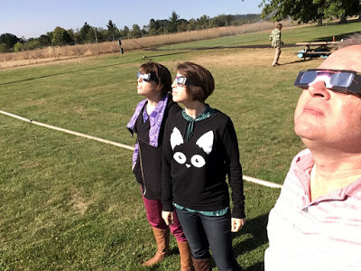 This was my girls' first total solar eclipse and my second. In February 1979, some college friends and I hopped aboard Amtrak's Coast Starlight (by "hopped" I mean in the non-fare-paying sense), slept overnight in the lounge car and got off in Portland, which turned out to be the only spot in the eclipse path completely covered in clouds. It was still awesome. Night fell in the morning, and I sensed in my bones a bit of the terror my ancestors must have felt when dragons devoured the Sun. This time I aimed to stare the dragon in the eye.