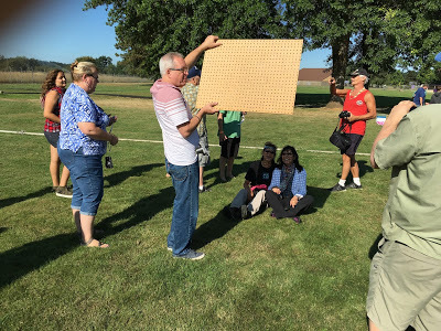 I'd scouted out Jefferson on Google Maps' satellite view and found three possible viewing sites: a cemetery on a hill that'd have great views to the east, a junior high school, and a high school. I also had visions of offering random homeowners $20 to let us sit in their front yard. Unfortunately, Google Maps couldn't tell me that the Jefferson cemetery's gate was locked until 8 a.m., nor whether the local schools had opened for fall classes. A sign on the high school read "School pictures and orientation August 24." Still on summer vacation! Lucky break! But the school's parking lot gates were locked. Bad break! But around the corner next to the junior high school was a city park I hadn't noticed.