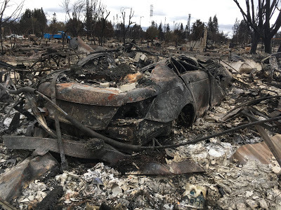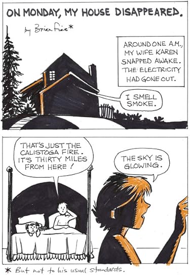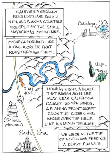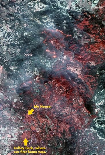 Many friends and family already know that my home in Santa Rosa, Calif., burned to the ground early Monday morning. Important Part: My wife Karen and I, and our dog and cat, got out alive. We had about 15 minutes to throw our lives into the back of a car and evacuate. I'm typing this on a computer in my daughters' apartment 30 miles away, where we've been bunking since. Karen's working long, hard days as part of our county's emergency response team. "Normal" is such a distant goal that we can't even see it on the horizon.