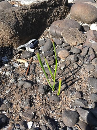 I'm pretty sure this is Mom's Flower: a delicate little bulb plant that for years after her death bloomed on her birthday, August 22. It didn't bloom this year, which we chalked up to weird weather and such. Looks like it's coming up now.