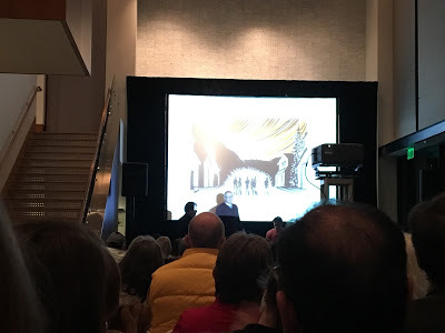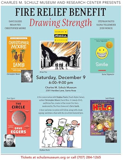 Part of my talk included photos I took as I walked into my neighborhood that first morning and the comic panels they inspired/informed.After the panel and coinciding with a wine and beer reception, the panelists were joined by author Dave Eggers, bestselling cartoonist (and my friend!) Raina Telgemeier, and Pixar animator Andrew Atteberry (who was added to the program too late to make the poster) to sign books and posters, and draw for fans. To help raise funds, people could pay $50 to have any artist draw whatever they wanted within the artist's ability and good nature.