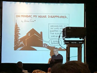 Judd started us off with an excellent impromptu talk about "Pedro and Me" as well as his new work "HiLo" while Stephan and I lurked in the shadows. Judd's done a lot of public speaking and stepped in confidently and smoothly.