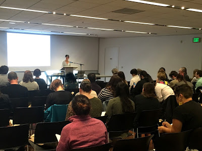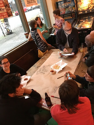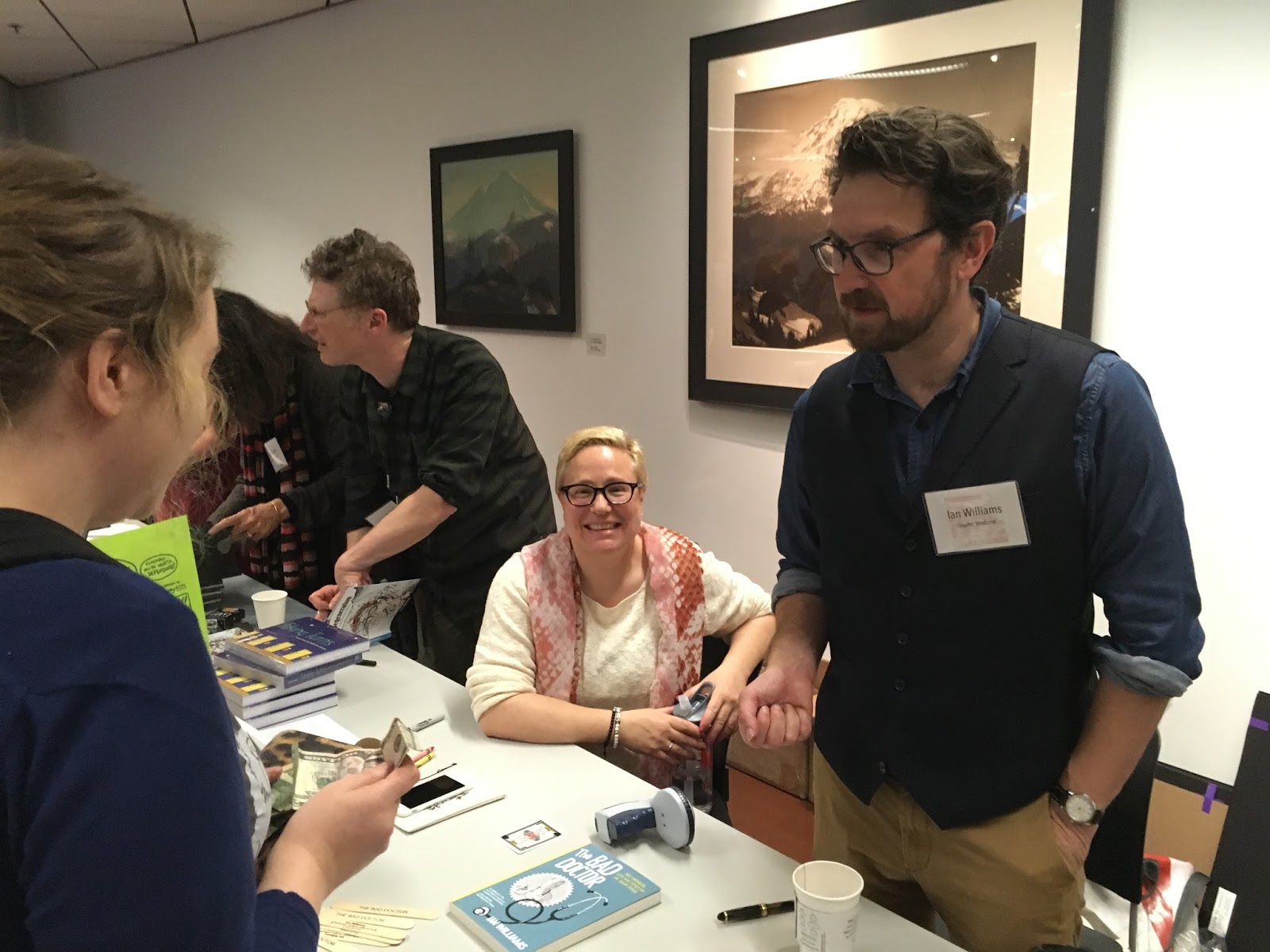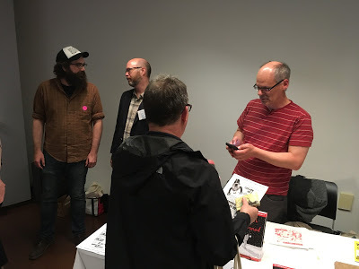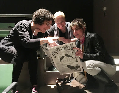 "Comic Nurse" MK Czerwiec, the other proprietor of the website, a Chicago nurse and teacher, another co-author of The Graphic Medicine Manifesto, and author of the new graphic novel Taking Turns about her experience on an early AIDS ward.Mita Mahato, an associate professor of English and cartoonist who does beautiful cut-paper art, has a book of poetry coming out in the fall, and was the on-the-ground lead for the Seattle conference.Susan Squier, professor of English and Women's, Gender and Sexuality Studies at Penn State University, yet another co-author of The Graphic Medicine Manifesto, and part of the organizing committee.Michael Green, an M.D. and bioethicist at Penn State University, yet another co-author of The Graphic Medicine Manifesto, and part of the organizing committee.Juliet McMullin, a cultural and medical anthropologist at UC Riverside, who led the organizing for 2015's conference in Riverside, Calif.I hope I got all that right. I'll introduce others as they come up. Assume every name I mention is preceded by the words "my friend." Pictures (most of which were taken on an iPhone in poor lighting) to prove it happened: