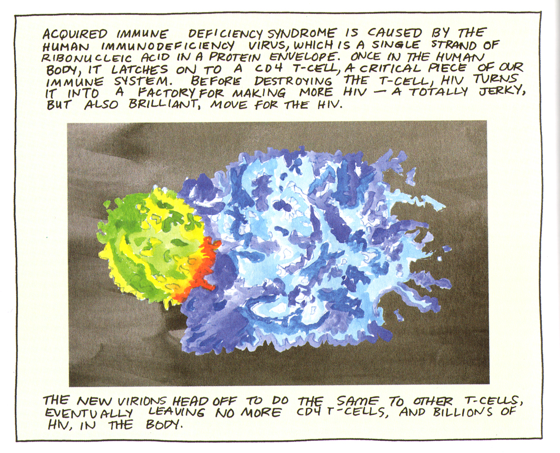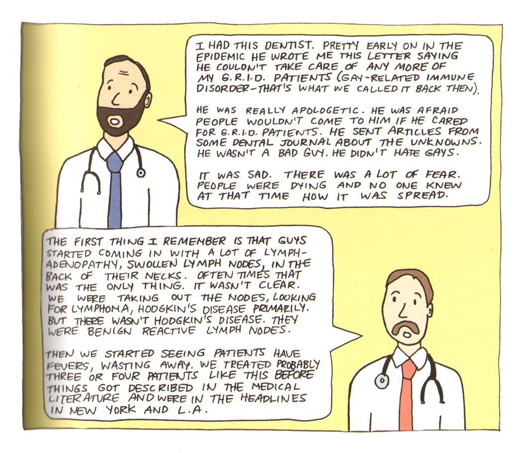 Done as a graphic novel, Taking Turns is part memoir, part oral history, and mostly journalism. It's deeply personal. MK writes about her struggles as a young nurse learning the job and finding her place, the panic of an accidental needle-stick, and the challenge of maintaining professional distance--or even knowing if she should maintain professional distance. Doctors, nurses and volunteers broke some rules getting close to patients who were mostly going to die, and while none of them seem to regret it, it took its toll.