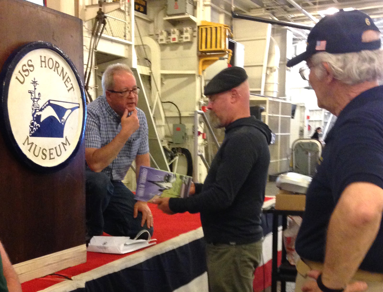 Jamie's been doing some prototyping for the U.S. Navy aboard the Hornet, in exchange for which they asked him to make an appearance.The opportunity to moderate came to me because the Hornet's STEM coordinator just had surgery and couldn't do it, the Hornet folks thought of me from other events I've done there, and maybe a bit because my daughter Laura is the museum's exhibition designer (although as I understand it, they approached her rather than the other way around).
