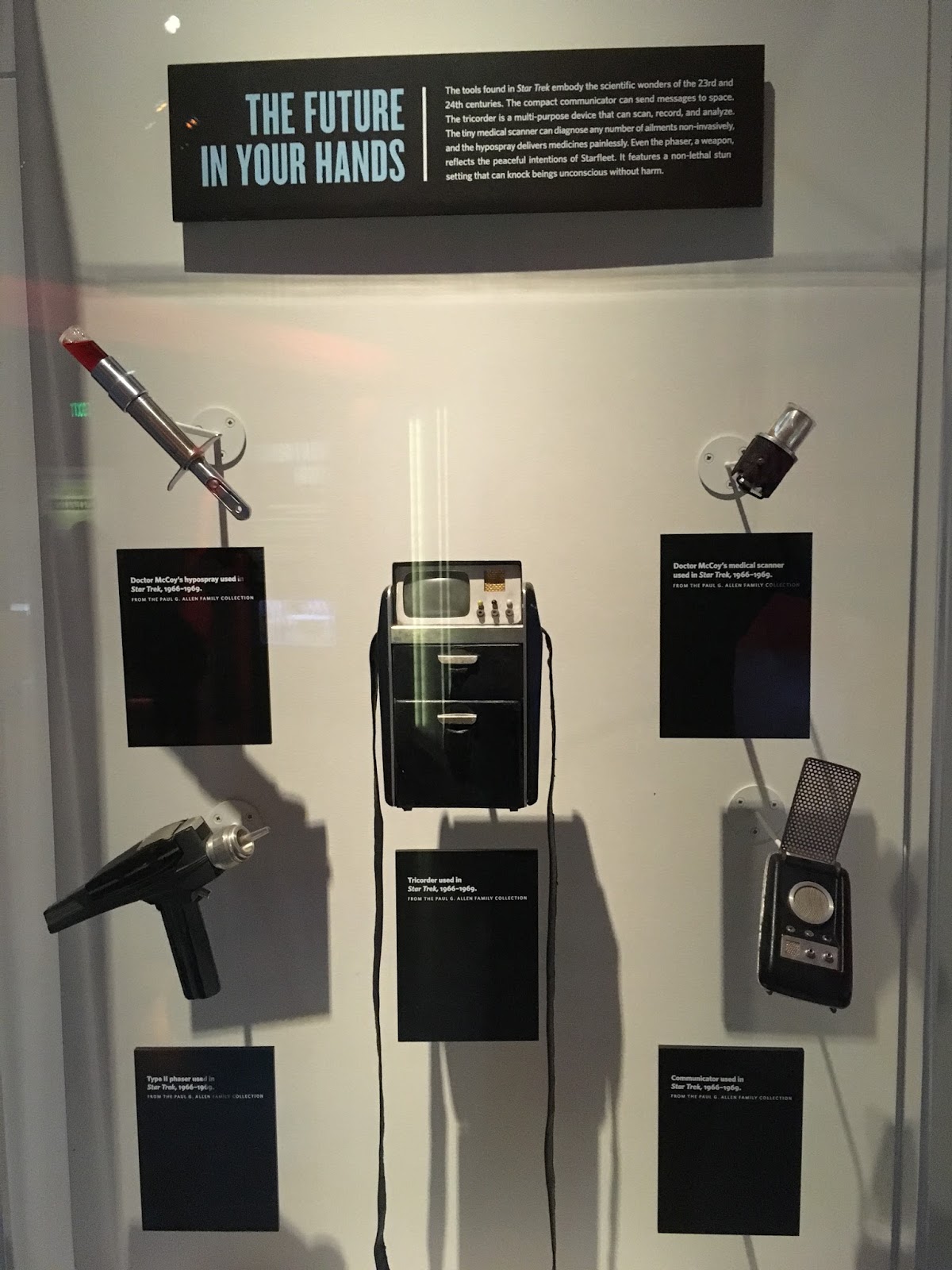 Ohmygod ohmygod! And actual phasers and tricorders and communicators and hyposprays!