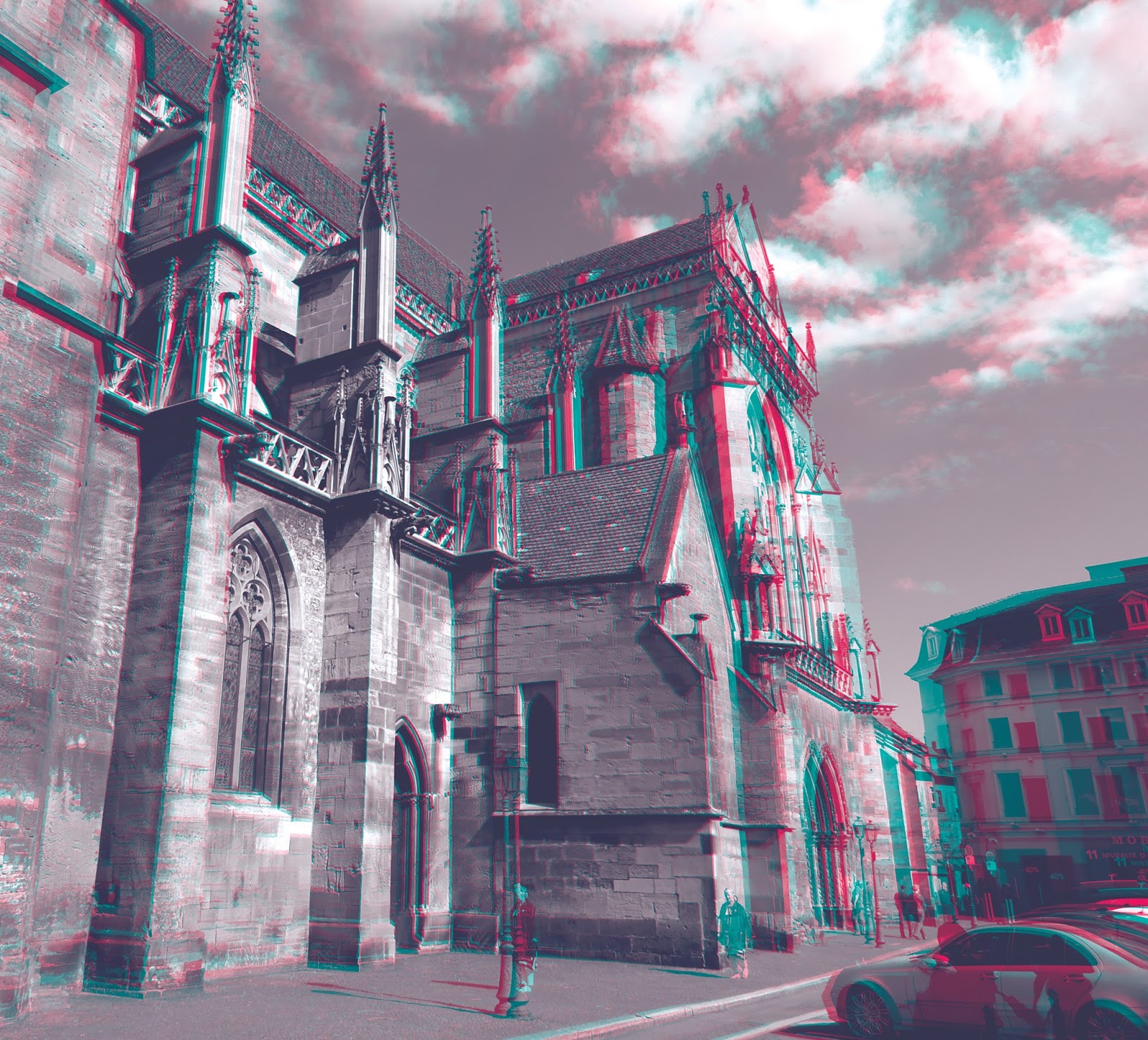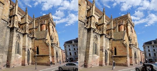 A couple of posts ago, I concluded my Rhine River Cruise trip report with a three-dimensional photo of the Strasbourg Cathedral (above). I shot more photo sequences on that trip intending to make 3D pics ("anaglyphs") out of them, and put a few together this morning. You'll need old-school red-blue 3-D glasses to see them.