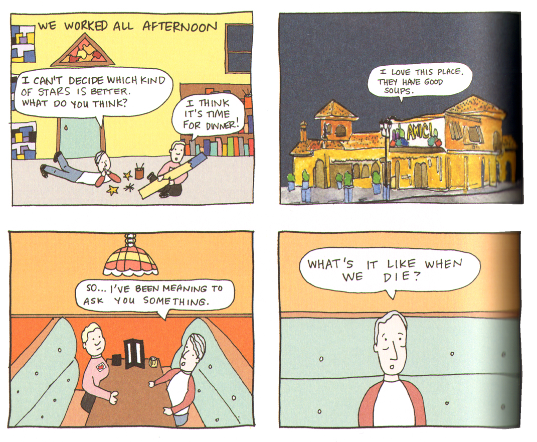 But y'know, that thing happened where the characters became kind of real to me, I felt bad when I made bad things happen to them, and sometimes they told me themselves what they wanted to do next. I found deeper themes about loss and legacy that struck a chord with me. When I finished the last page, a genuine sadness settled over me for days because I wouldn't be spending any more time with Sparky, Lillian, Helen, Chip and Ted. I missed them.Another surprise was how deeply some readers got involved with and even moved by the story. That comes with the territory when you do comics about illness or even Space Age history, but I honestly didn't expect anybody to really care about my giant robot comic. Yet some did. I had a wonderful correspondence with a man whose father had fallen into depression when his wife died, and my comic helped him climb out of it. The father sent me a song he composed, accompanying himself on the accordion, that makes me smile every time it comes around on my playlist.