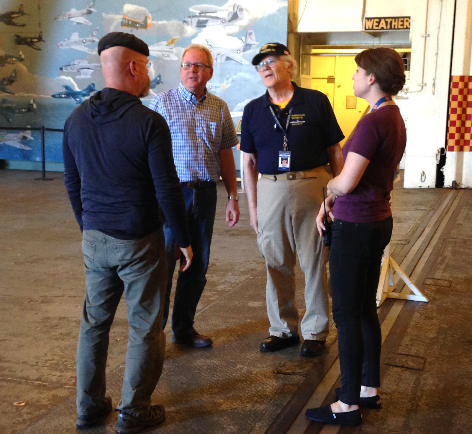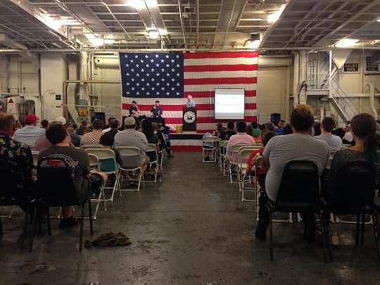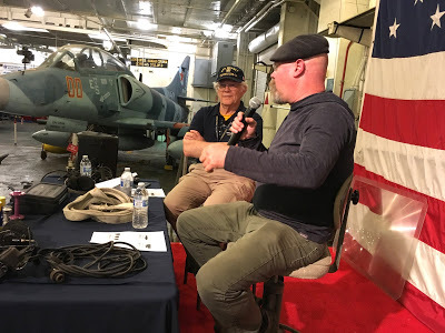 In all the focus on Jamie, I don't want to shortchange Chuck, who has been a docent on the Hornet for seven years and served as a bridge officer on her identical sister ship, the USS Yorktown. He's the best. Chuck really knows his ship, but more important for our purposes, has a talent for explaining what he knows without bogging down in mind-numbing detail. Chuck prepared more than 30 slides and we ended up using seven or eight of them, and I just wish we'd had another hour to really dive into some of the material he'd come ready to talk about.