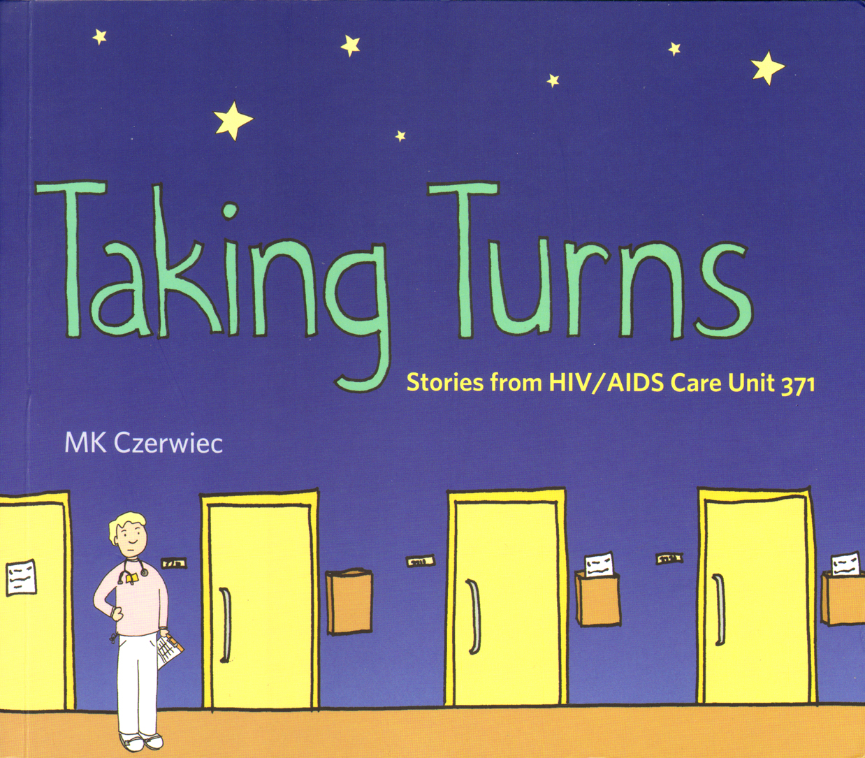 Taking Turns: Stories from HIV/AIDS Care Unit 371 is by my friend MK Czerwiec, who as "Comic Nurse" is one of the ringleaders of the Graphic Medicine community. It's the story of her experience as a nurse on a pioneering hospital unit through the 1990s, from the early days of a mysterious deadly disease to the day AIDS treatment became so effective that Unit 371 closed and MK was the last one left to turn off the lights.