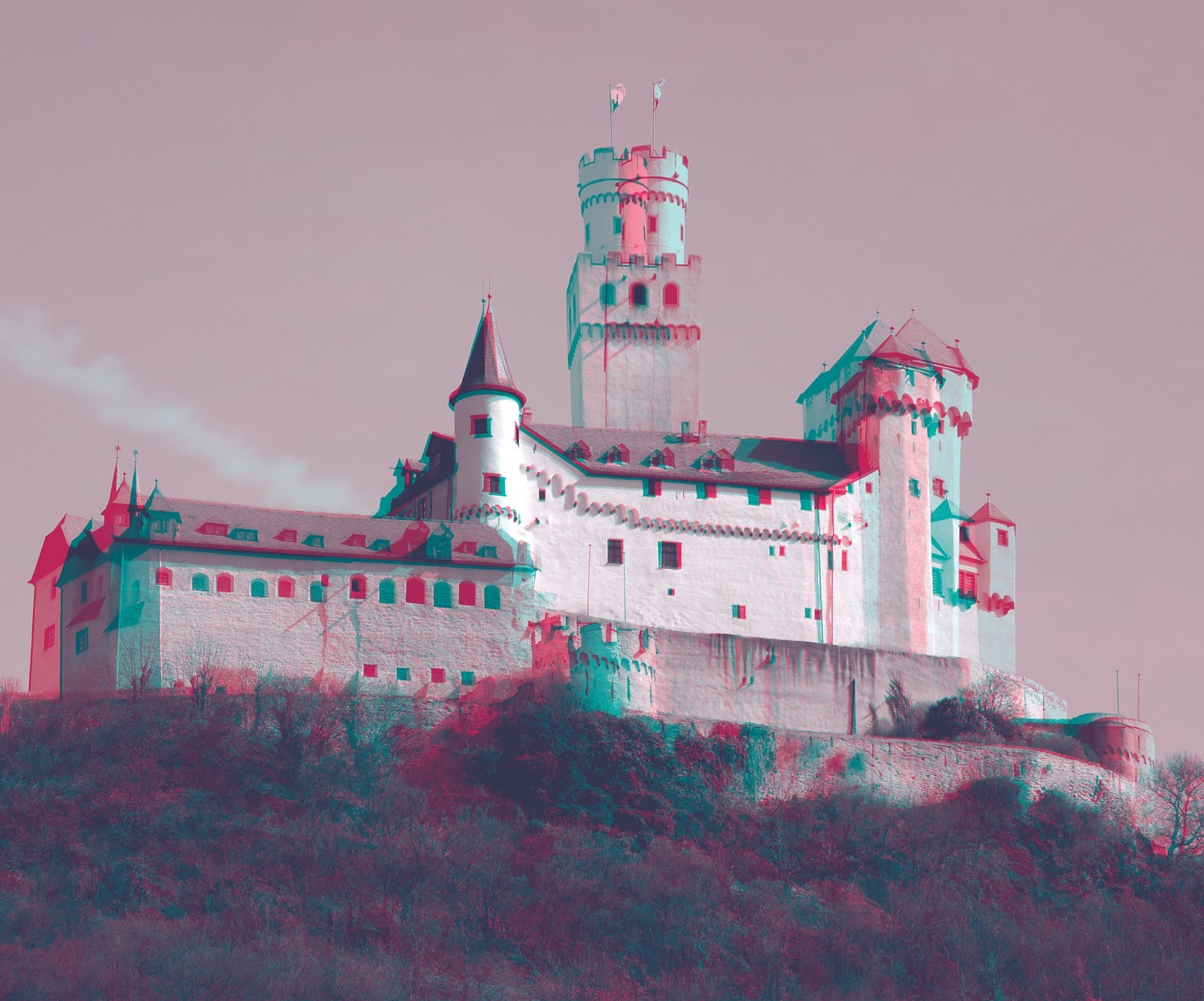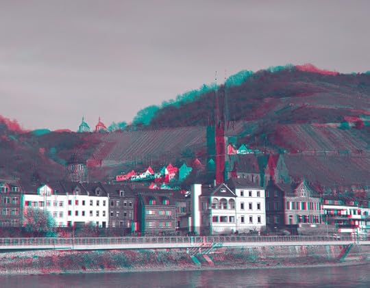 Marksburg Castle. This is one of my less successful anaglyphs because I think there's too big a difference between the angles. Also, I shot them from the boat that was moving away from the castle in addition to past it, so there's some unwanted movement involved. Still, I think the 3D works.