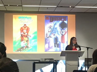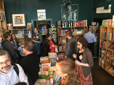 Both nights of the conference were capped with extracurriculars. After the first full day, many attendees made the long trek south to the Fantgraphics Bookstore and Gallery, which for fans of sophisticated comics literature is a bit like a pilgrimage to Mecca. It's a small space packed with terrific stuff. After the second day, we adjourned to the Raygun Lounge, another funky space providing beverages, gaming tables, and vintage pinball machines.