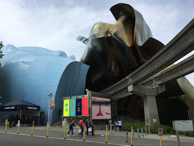 Of course I walked the waterfront and Pike Place Market. With time to kill and a passion for World's Fairs of the past, I also visited the site of the 1962 World's Fair, riding the monorail built for the event to its centerpiece, the Space Needle. Imagine my astonishment finding the Museum of Pop Culture (MoPOP) right next door, then my giggling delight at finding it had a wing dedicated to "Star Trek."