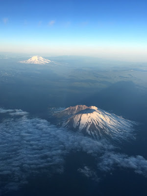 My flight home was one of the best I've had in years. The plane was only about a quarter full and took off due south at sunset, giving us wonderful views of the snowcapped Cascades. I took a few photos out the window, knowing that they never capture one-tenth the beauty you see by eye.