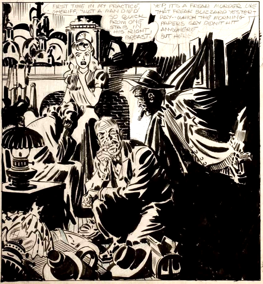 Masterful brushwork by Milton Caniff (top), Will Eisner (center) and Mort Meskin (bottom).I have no idea what did or didn't influence Cooke, but he would have been very aware of all those precedents when he sat down to do more Impressionistic work like this: